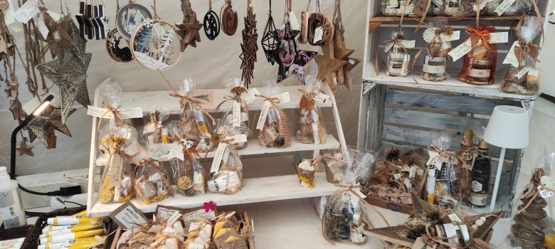 Pfälzerwald-Verein: Bratwurst, Winzersteak, Glühwein, Kinderpunsch, Getränke, Handwerkliche Weihnachtsdekoration
