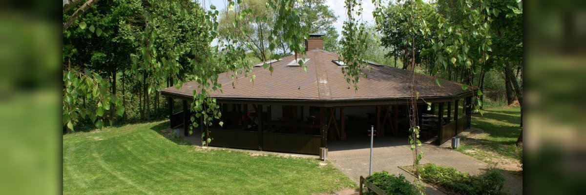 Die etwa in der Mitte des Geländes gelegene Grillhütte weist einen überdachten, aber zu drei Seiten offenen Bereich mit festen Bänken und Tischen für bis zu 100 Personen aus. Den Mittelpunkt bildet ein großer gemauerter Grill. Ein Küchenraum mit Kühlschrank, Geschirrspüler und Vorratsschränken sowie ein Lagerraum zur Unterbringung mitgebrachter Getränke und Verpflegung sind vorhanden. Des Weiteren gibt es eine rückseitige Toilettenanlage mit Damen- und Herrentoilette. Bei Bedarf kann die Hütte durch vorhandene Vorhänge insbesondere gegen seitliche Nässe oder Kälte geschützt werden kann.